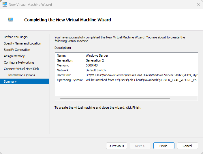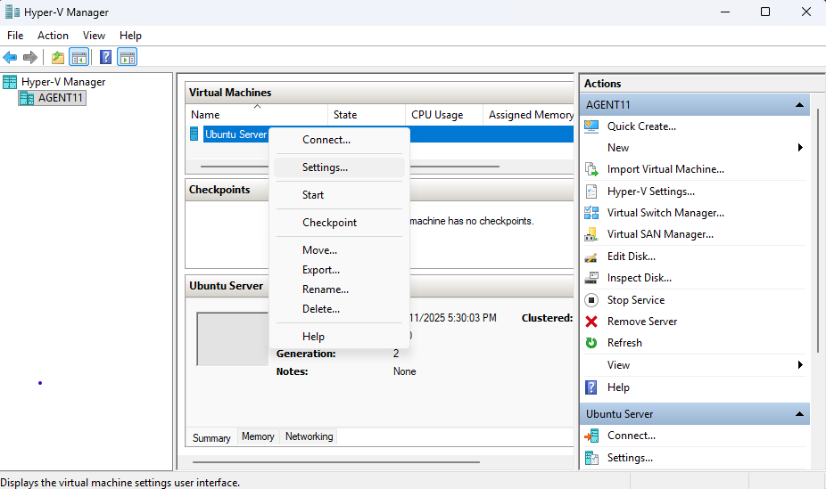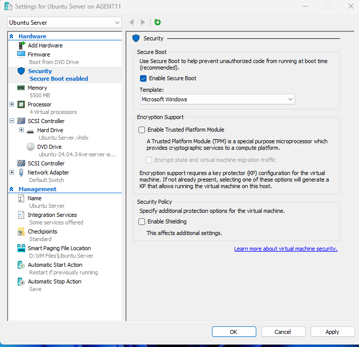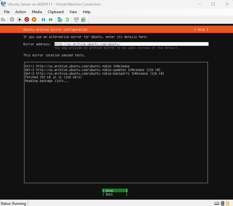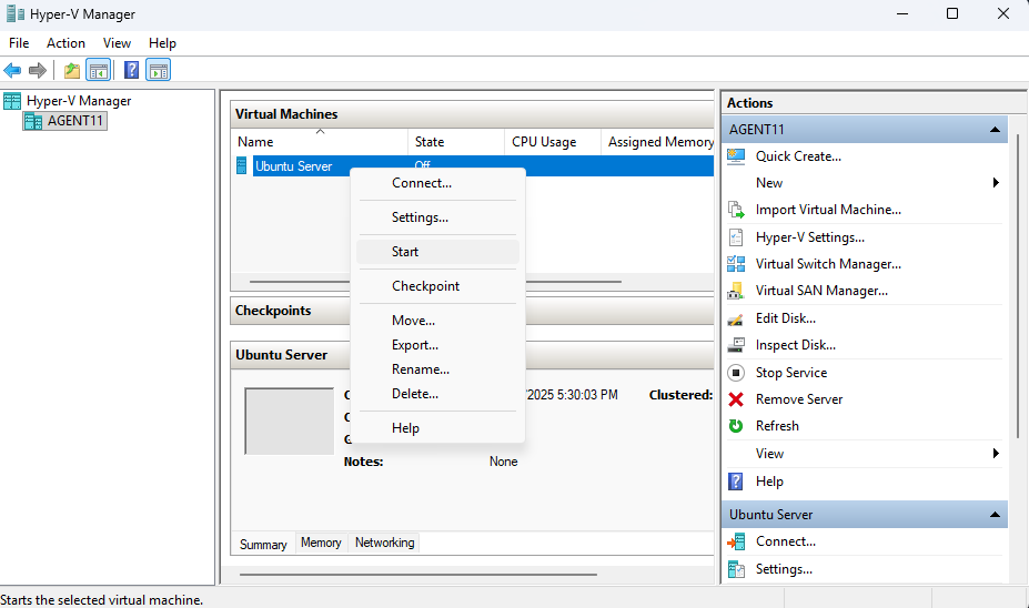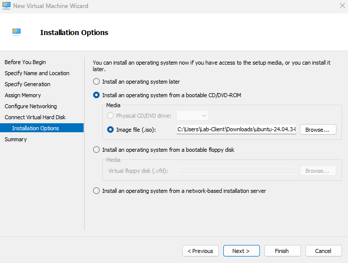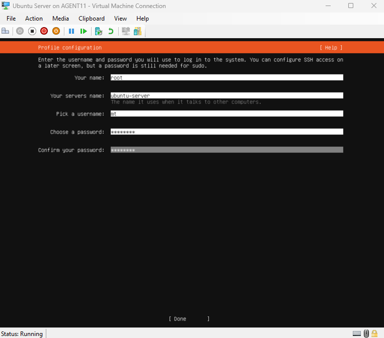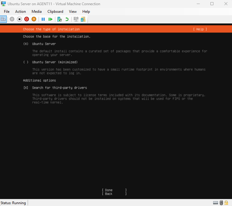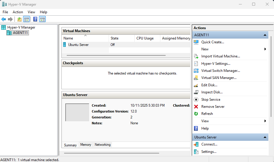 This section walks through creating an Ubuntu Server VM in Hyper-V and completing the full installation of the operating system.