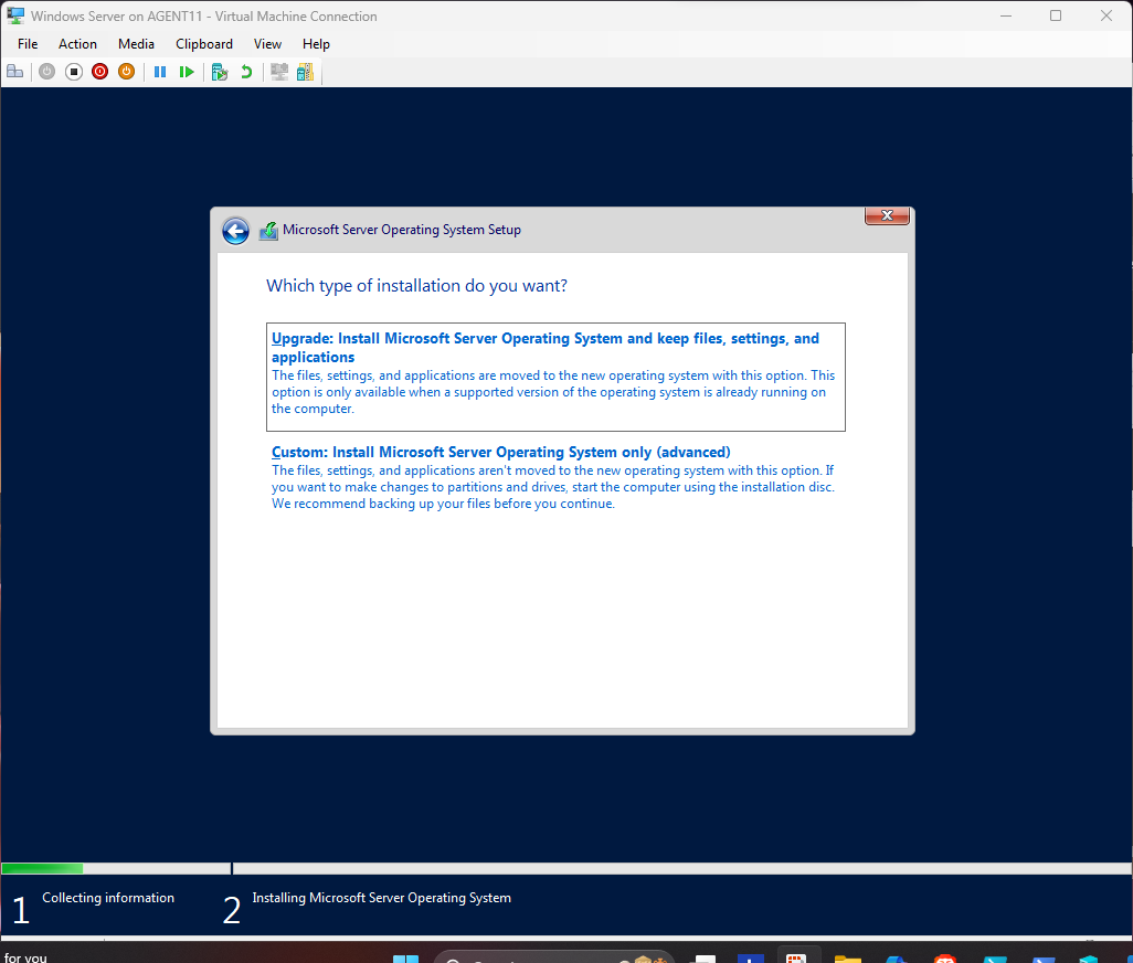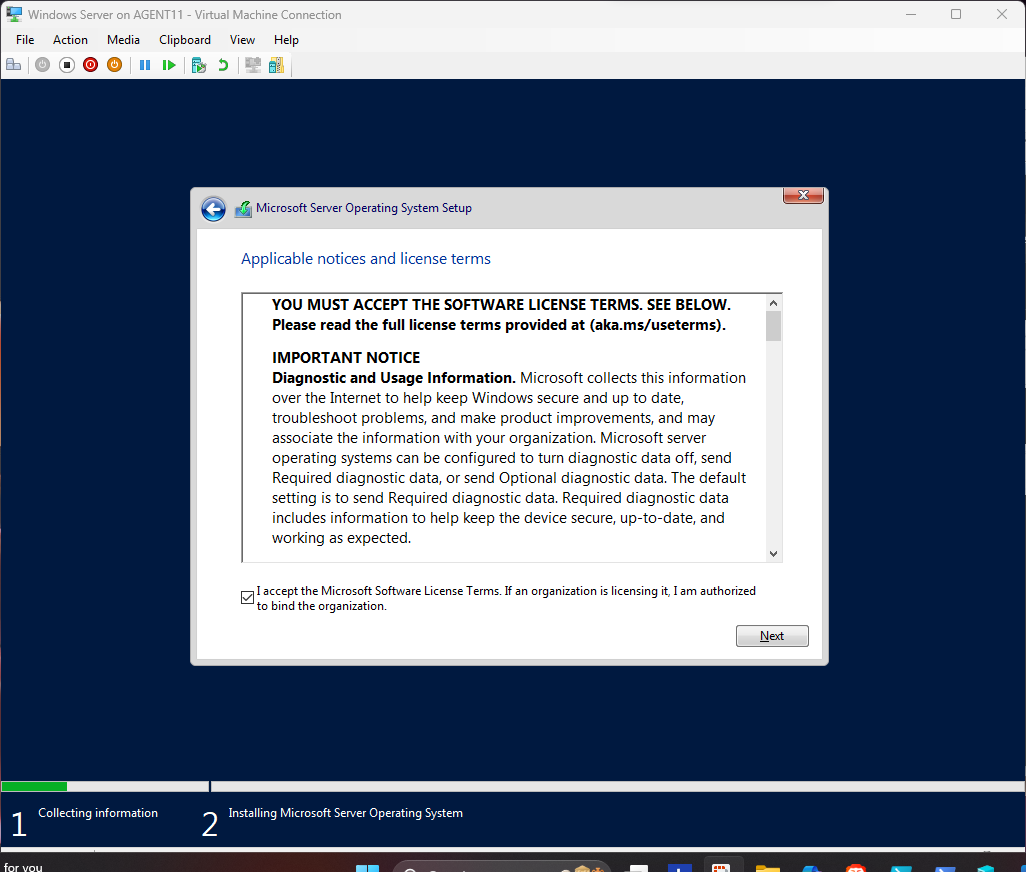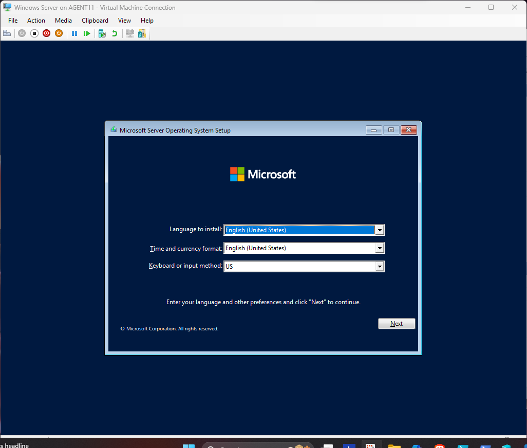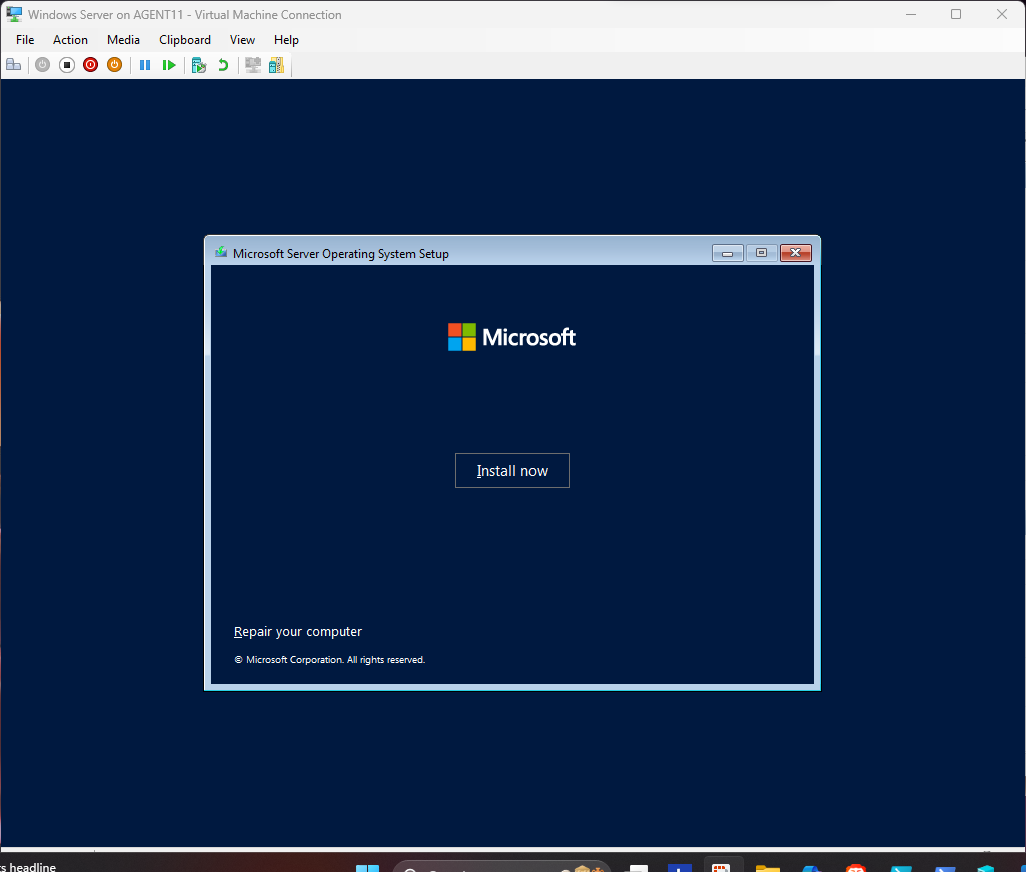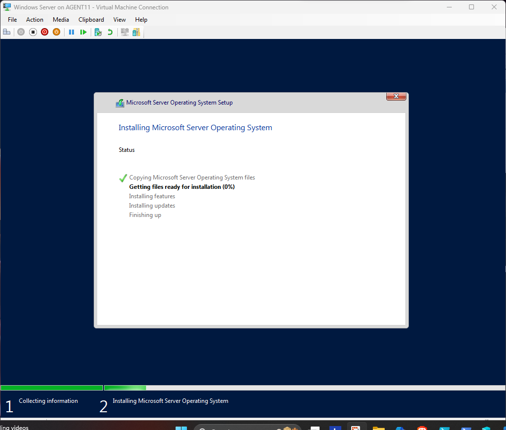 This section demonstrates the complete Hyper-V virtual machine creation process and the full installation of Windows Server.
