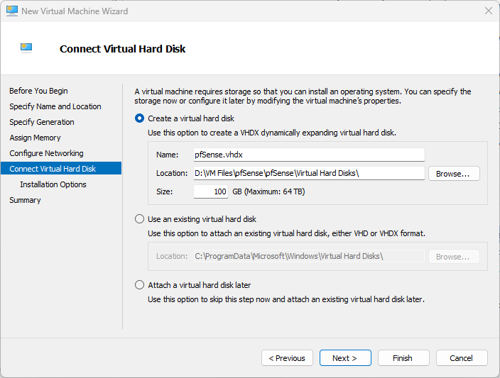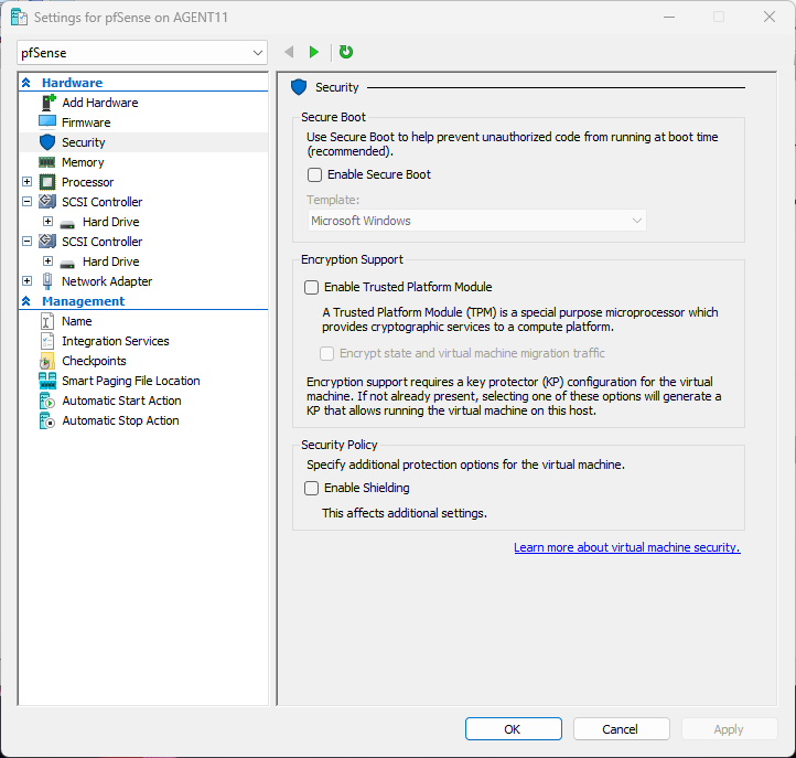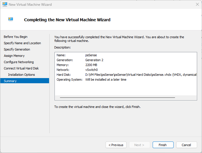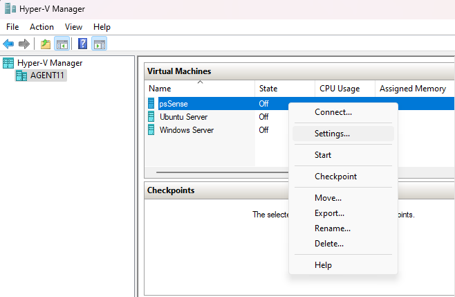 A complete walkthrough of creating Windows Server, Ubuntu Server, and pfSense virtual machines in Microsoft Hyper-V — including VM creation, OS installation, and initial configuration.
