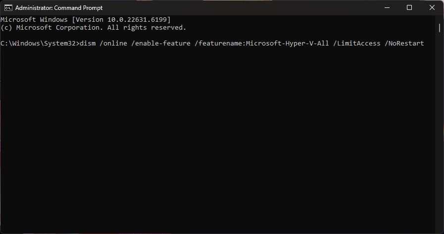 dism.exe /Online /Enable-Feature /All /FeatureName:Microsoft-Hyper-V