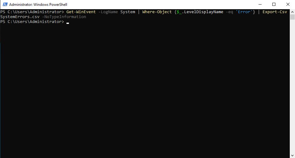 Export-Csv SystemErrors.csv -NoTypeInformation